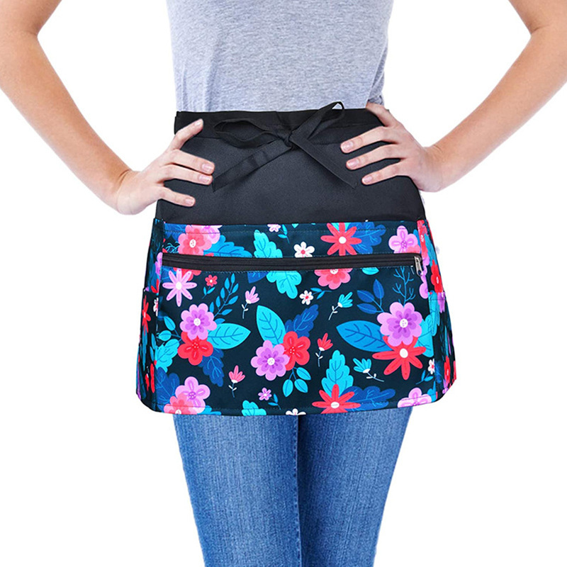 ヒョウ柄の花の半身のエプロンのファスナーの大きいポケットのひもはスカートの従業員の作業服の短いエプロンを調節することができます。