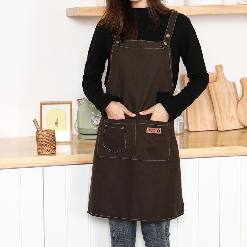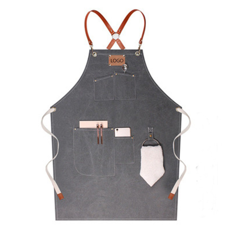 キャンバスエプロンカスタムロゴ印字花芸師コーヒー職人ミルクティー店レストランファッションカウボーイ作業エプロン