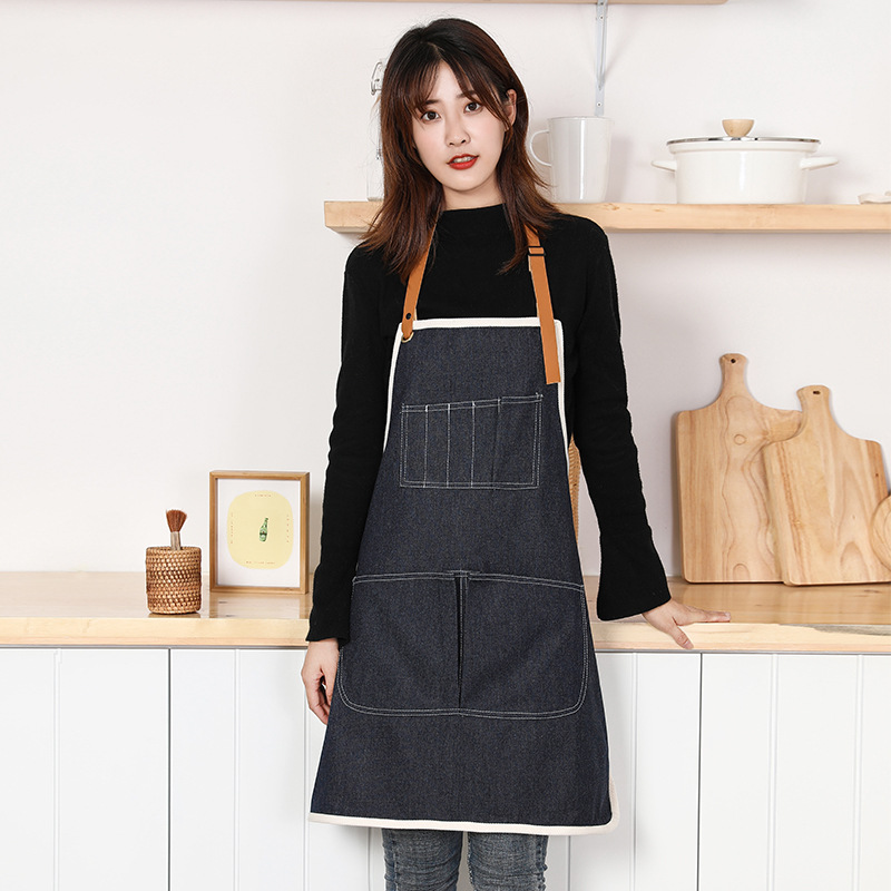 広告デニムエプロンカスタムロゴレストランミルクティー店作業服キッチン男女韓国版デニムエプロン