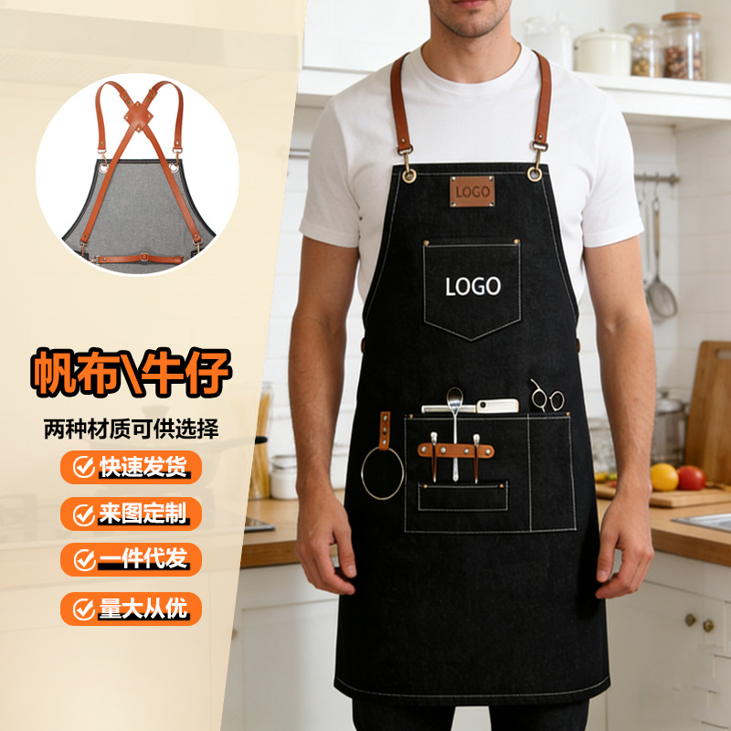 クロスボーダーキャンバスエプロンオーダーメイドキッチンレストランバーベキュー焙煎店サービスマン作業服エプロンオーダーメードlogo