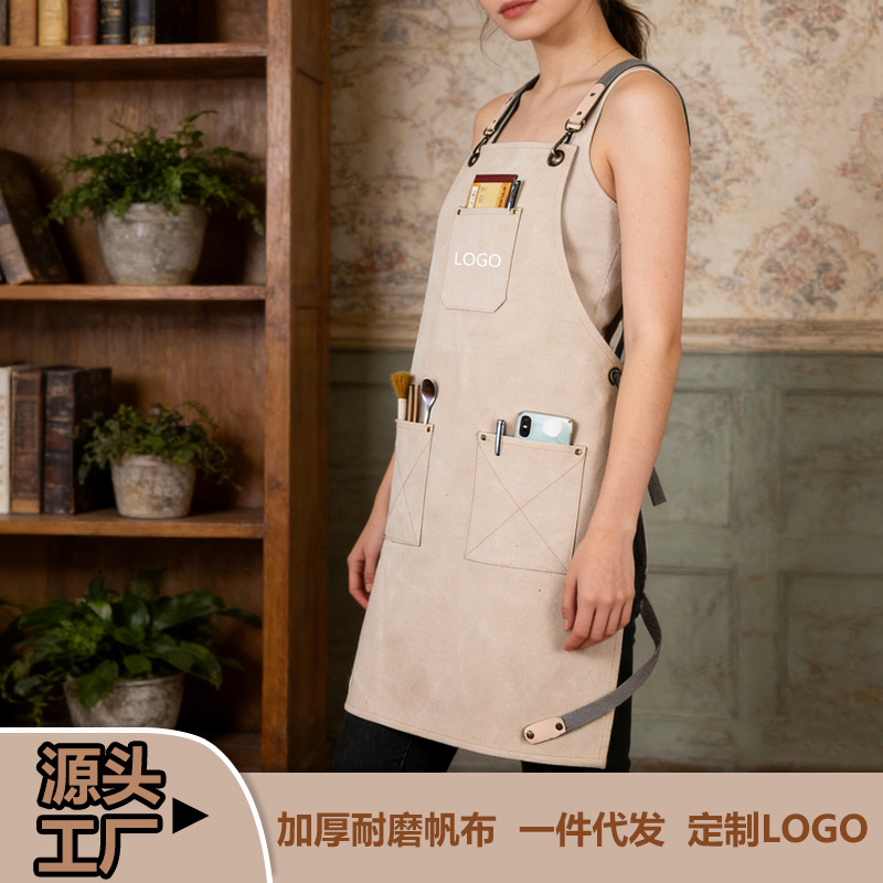 背帯厚帆布作業エプロンカスタムロゴ花芸師コーヒーレストランミルクティー店男女ファッションウエスト