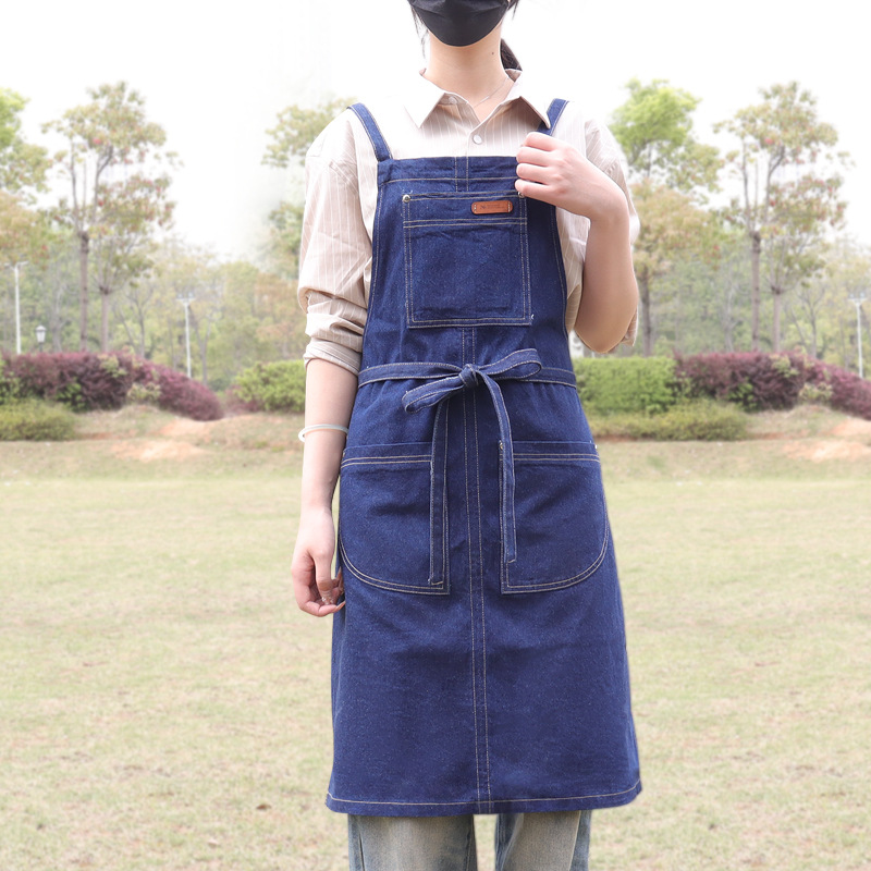国境を越えた卸売外国貿易デニムエプロンレストランミルクティーコーヒーショップガーデニングファッション作業服エプロンカスタムロゴ