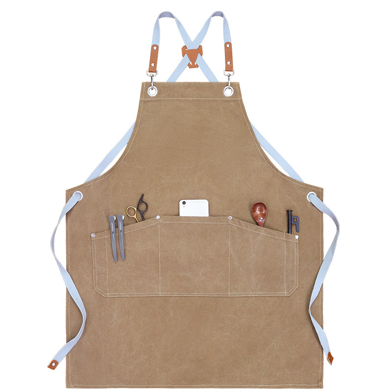 Amazon貿易メーカー女性用エプロンミルクティーコーヒーショップ作業服厚手のキャンバスクロスボーダーエプロンカスタムロゴ