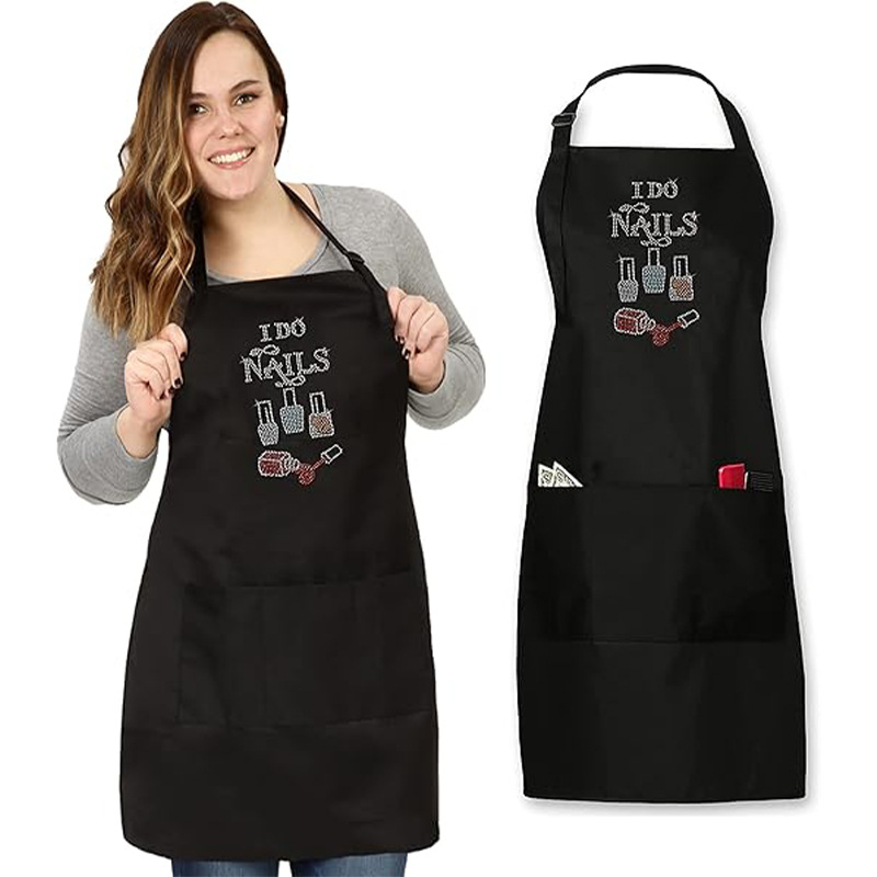 Amazon 外国貿易ホットダイヤモンドホルターエプロンカスタム理髪店ネイルショップ作業エプロンメーカーはロゴを印刷したり刺繍したりできます