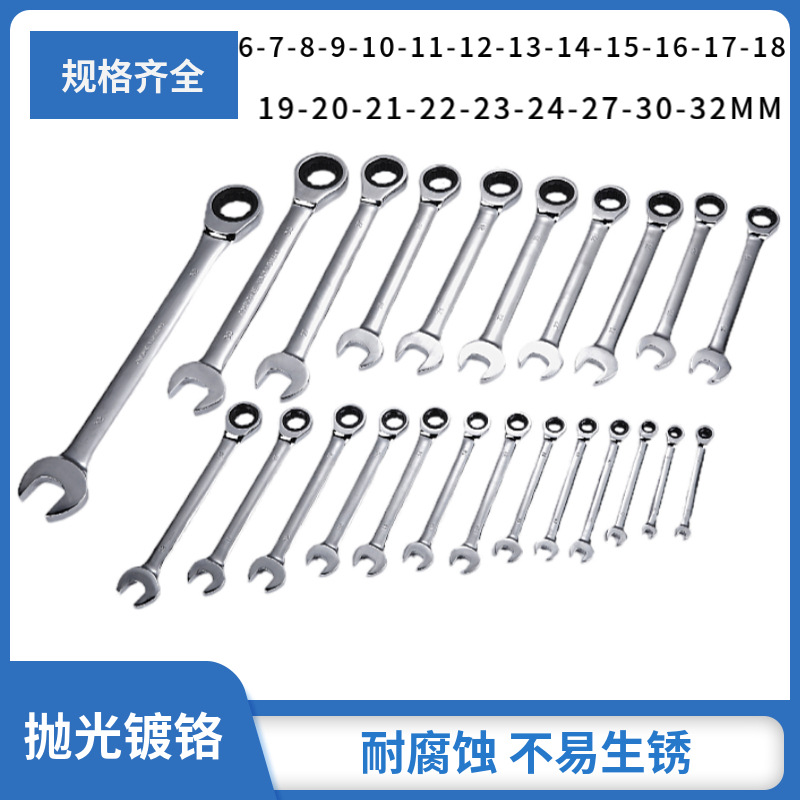 浙江メーカー直供8-22クロムバナジウム鋼180度活動ラチェットレンチセット活頭両用ラチェットレンチ