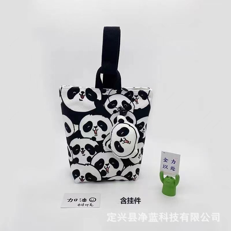 中国風手描きパンダpanda白黒ハンディドッグラン手首バケツバッグ大容量携帯収納袋