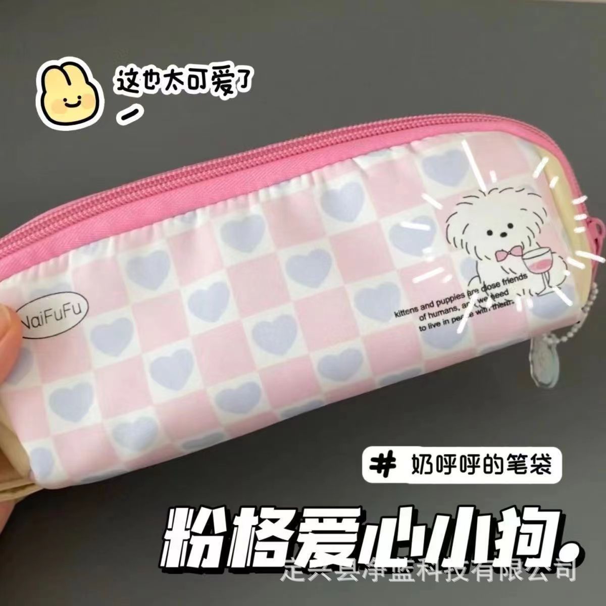 小紅の本の同じ種類の乳芙の粉の格の愛の子犬の筆の袋の日系の文房具の箱の収納袋の大容量の文房具の袋