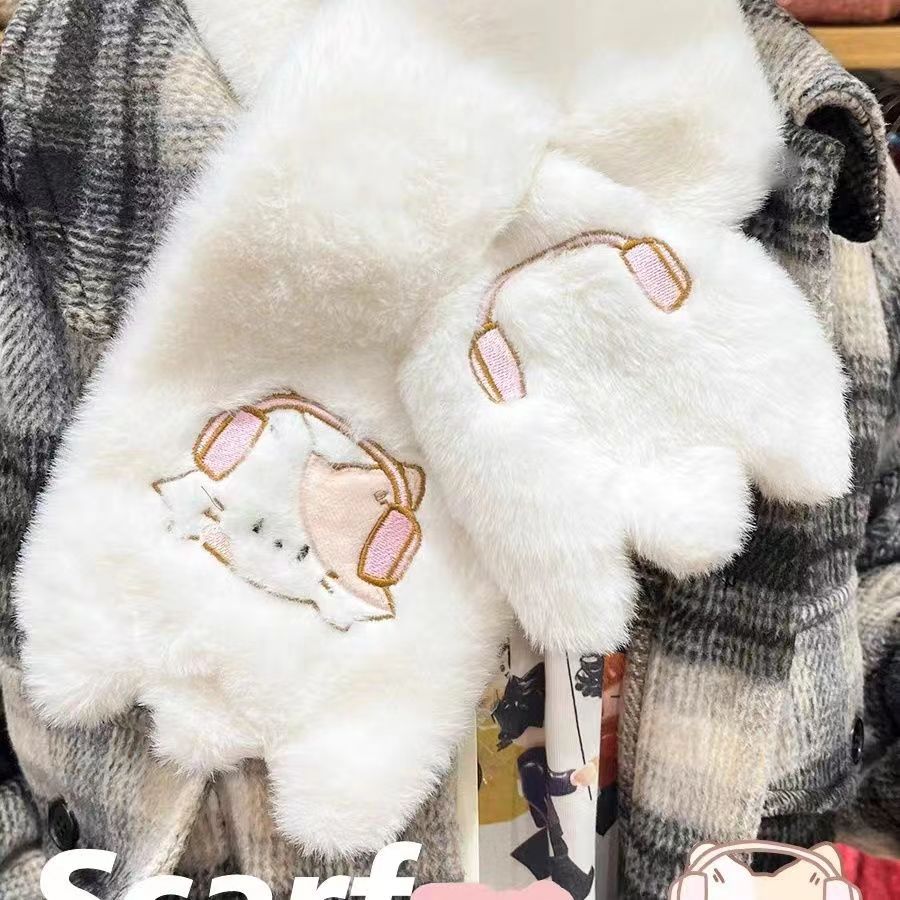 イヤホン猫のマフラーには、首を囲む白い偽襟の首のかわいい襟の女性冬の男性2023の新しい手袋がついています