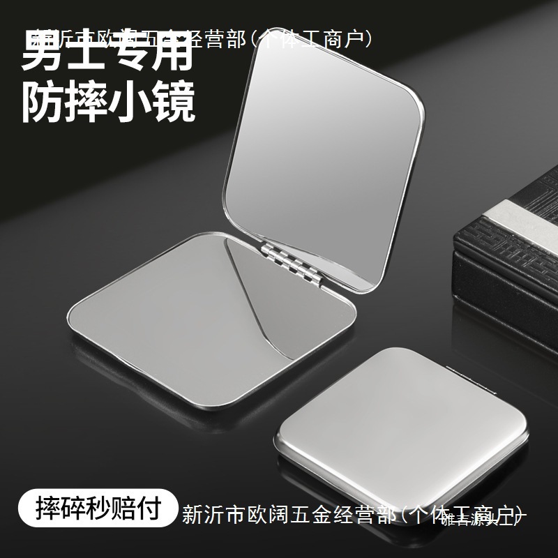 男性用ハンドヘルド両面ラウンドミニ折りたたみステンレス鋼落下防止ポータブル化粧鏡小型ミラー
