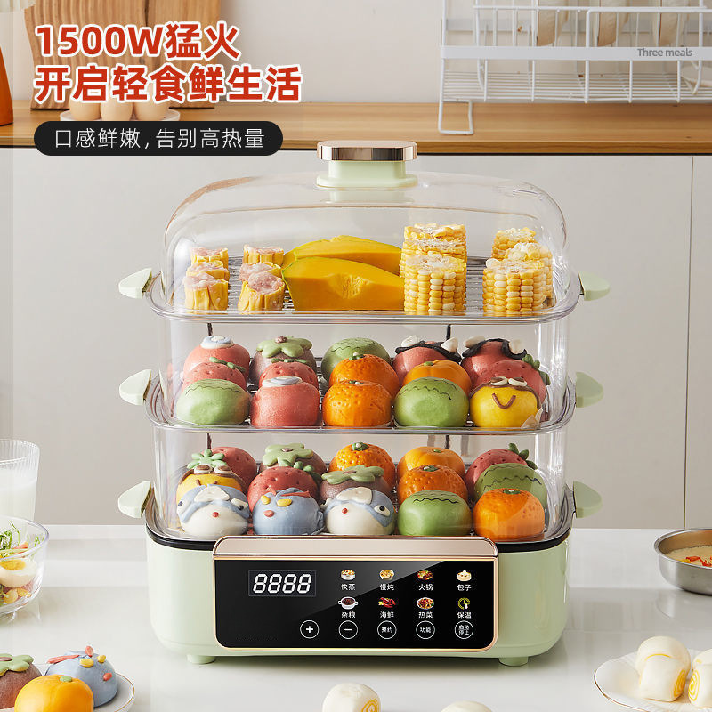 新しい電気蒸し器家庭用多機能蒸しと調理オールインワン拡張と厚みのあるステンレス鋼の蒸し魚4層大容量蒸し器