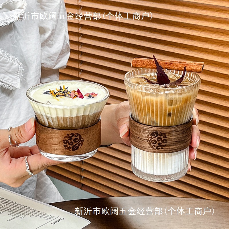 インスハンギングイヤーコーヒーカップ二重層ガラスアイスアメリカンラテラテアートカップ和風家庭用ミルクドリンクカップ