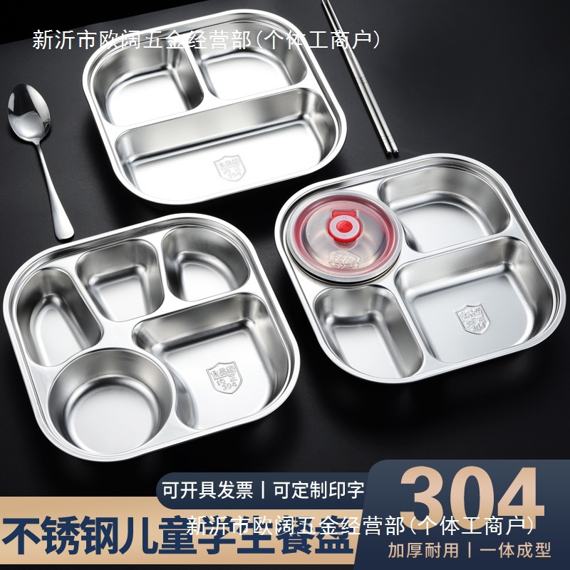 304 ステンレス鋼のディナープレート幼稚園子供用食器大人学生分割ファーストフードプレート蓋付き食堂分割プレート