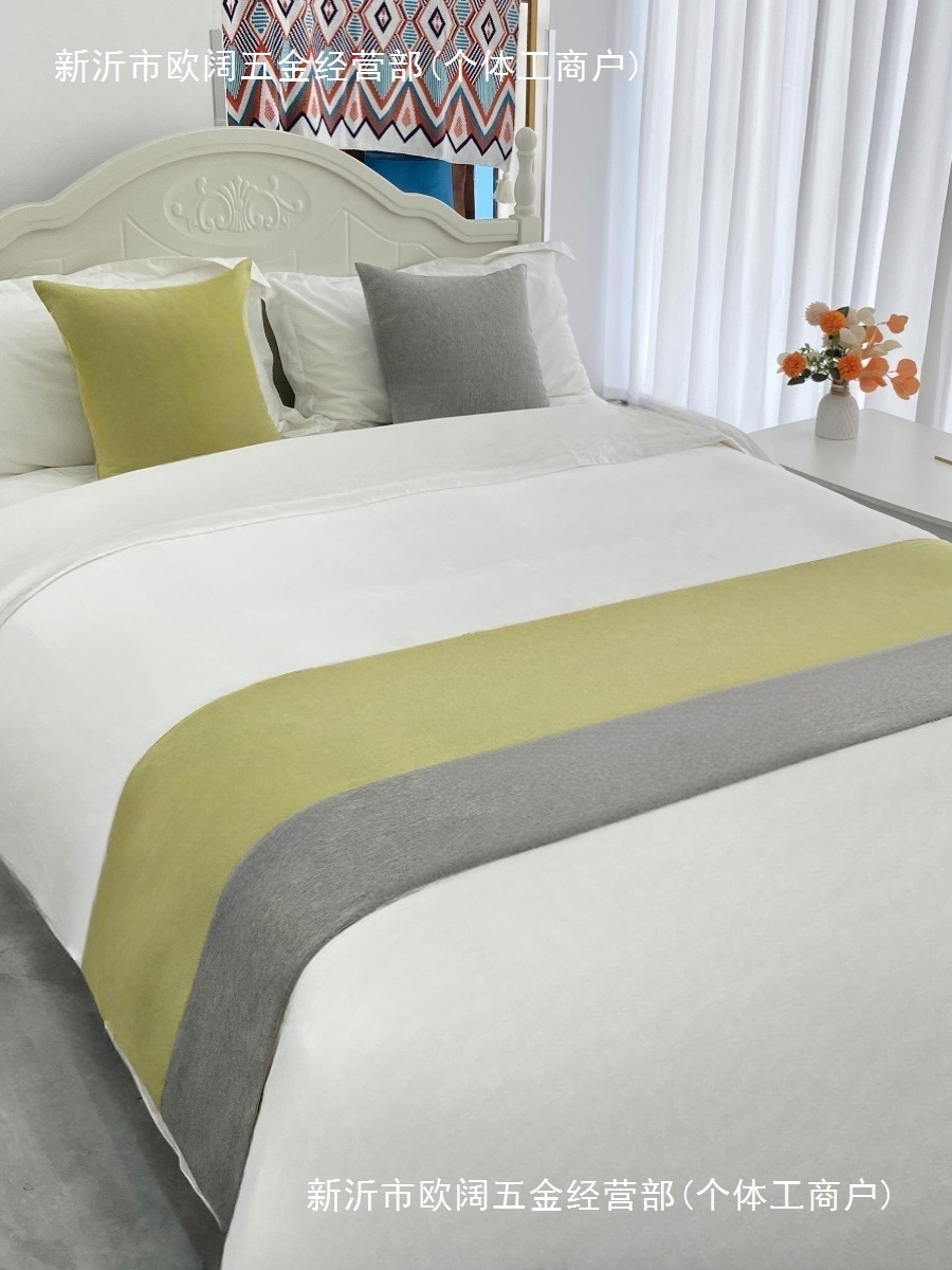 モダンでシンプルなホテルの無地のベッドサイドタオル、B&Bのライト高級ベッドサイドタオル、ホテルのベッドフラッグ、ベッド装飾