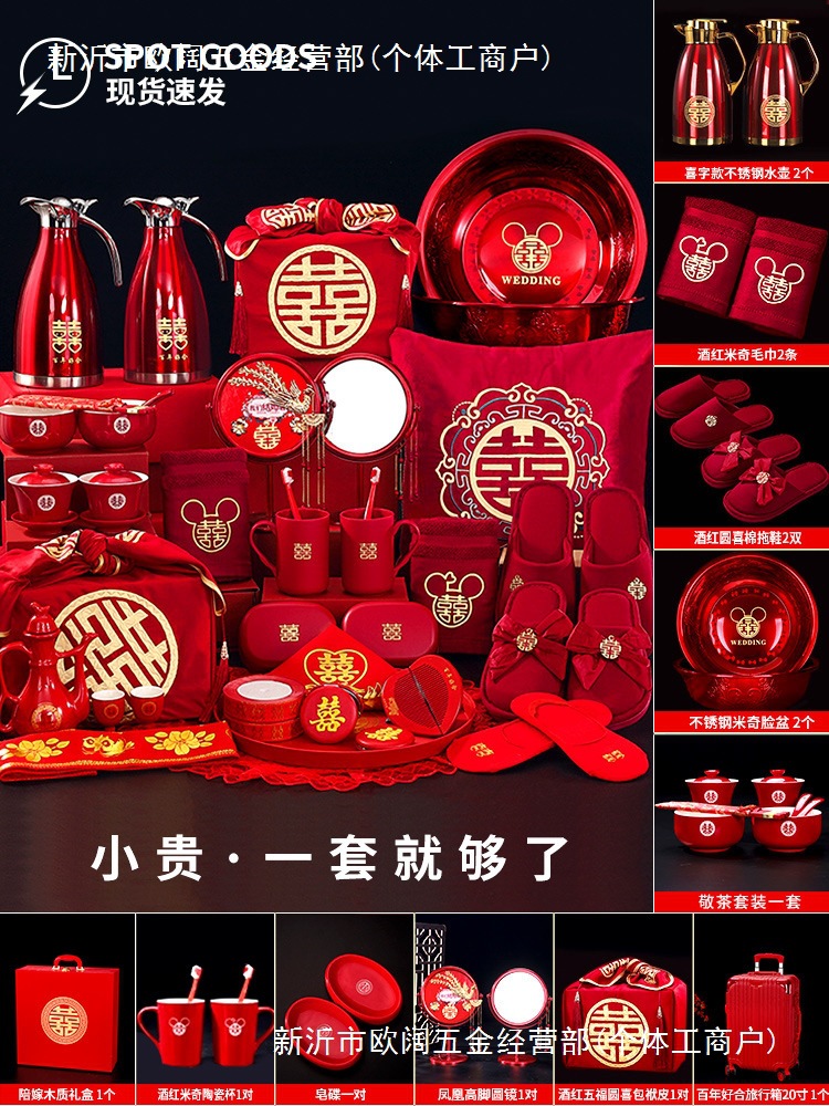 結婚式の女性の持参金セット、結婚式のアイテム、花嫁の持参金の完全なセット、結婚式の箱、結婚式の用品
