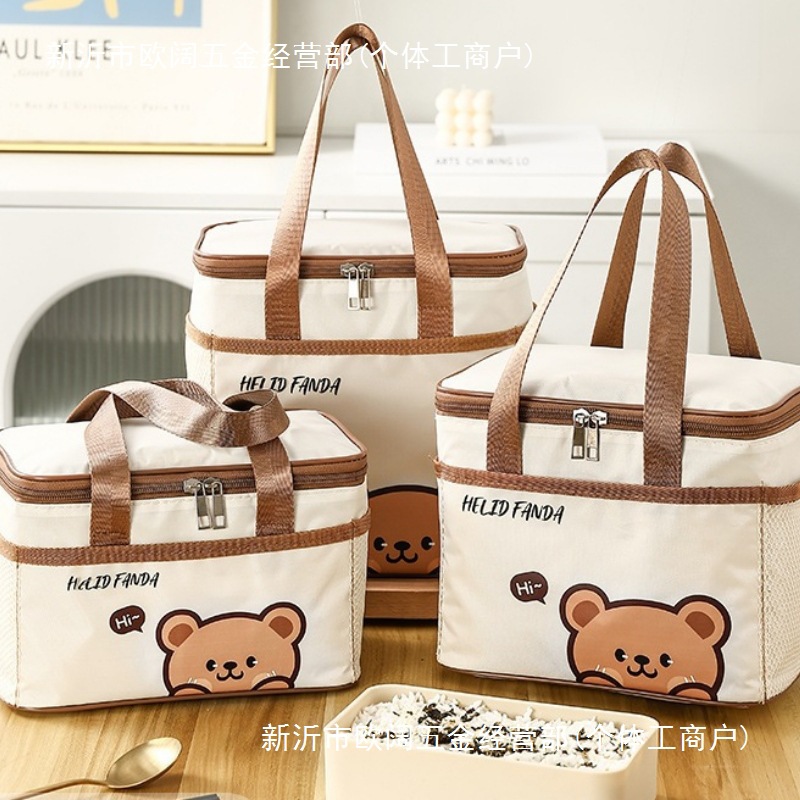 お弁当の手提げ袋にアルミ箔を厚くしたサラリーマンの小学生はご飯を持っています。