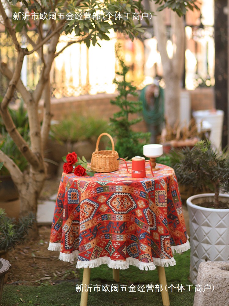 モロッコエスニックスタイルラウンドテーブルクロスボヘミアンテーブルクロス新年レッドレトロテーブルクロスピクニックキャンプカバー
