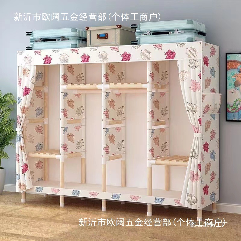 賃貸住宅用組み立て式シンプル布製ワードローブ無垢材布製ワードローブホームベッドルームオックスフォード布製ワードローブ洋服ラック