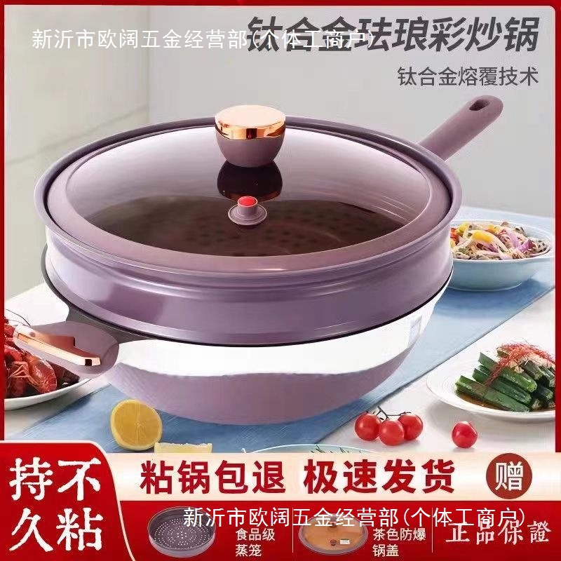 双色钛金不粘锅健康少油烟家用炒微压有钛平底蒸笼炒锅
