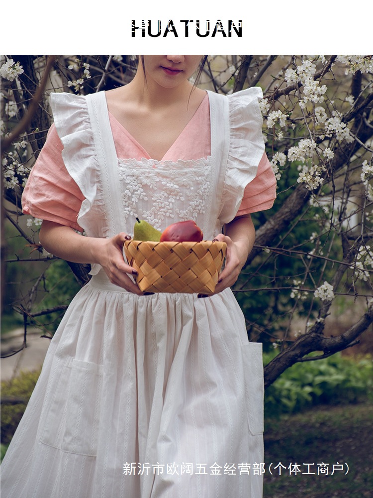 ホワイトインエプロンレースガール田園風文学絵画フラワーショップ美容ベーキングキッチンエプロンオーバーオール