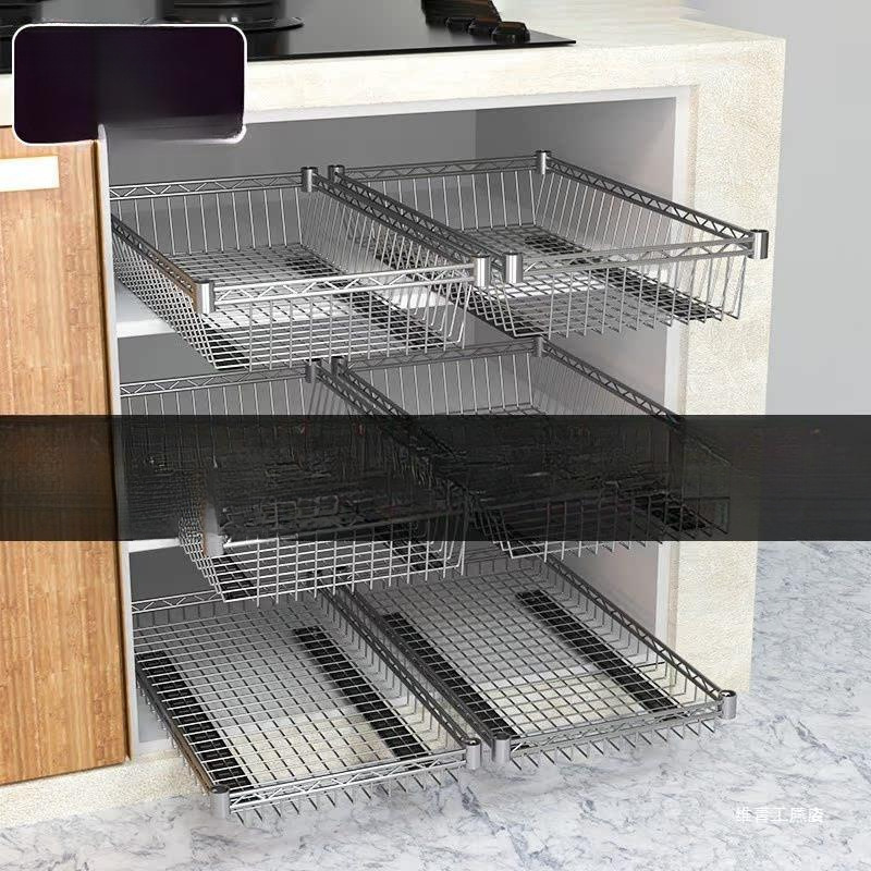 台所のバスケットキャビネットを改造して食器棚のスライドレールを収納します。