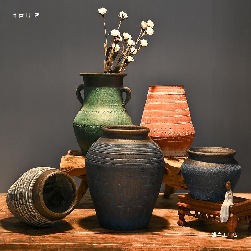 レトロ陶缶手作り粗陶多肉植木鉢花瓶花器土陶缶瓦缶新中国式ドライフラワー