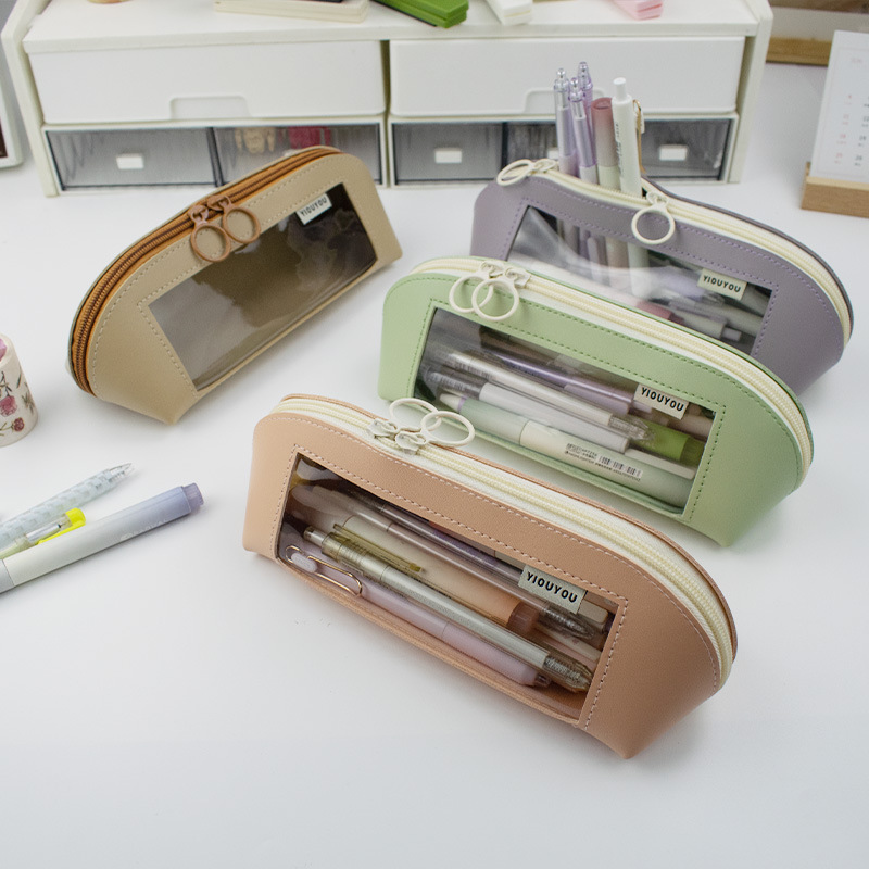 貝殻筆袋バッグ厚手水洗いPUレザーエコポータブル文房具ペン収納袋学生透明鉛筆袋