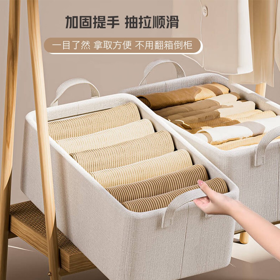 天山綿とリネンのカバーなし衣類収納ボックス PP ボードスプレー鋼フレーム折りたたみ洗濯衣類とズボンワードローブ整理ボックス
