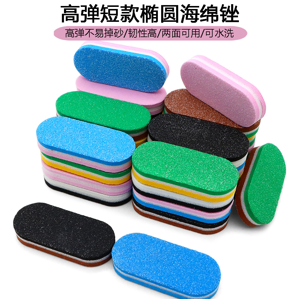 新型ミニスポンジやすり超薄楕円形豆腐の塊の甲面はスポンジを研磨して色の爪やすりの両面を合わせます。