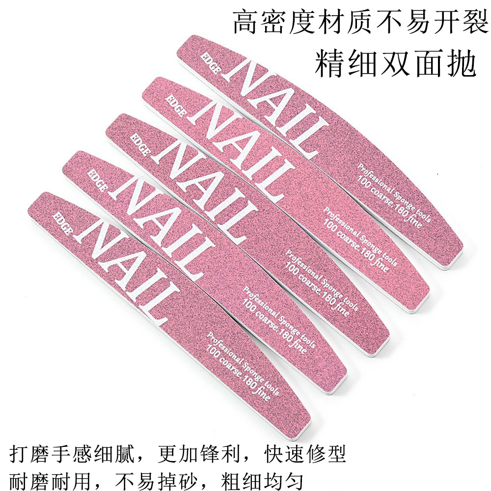 ピンクの厚い半月の爪やすりの耐摩耗性の砂の棒の両面の研磨のネイルアートのバーのファッションの砂の棒のメーカーの卸売り