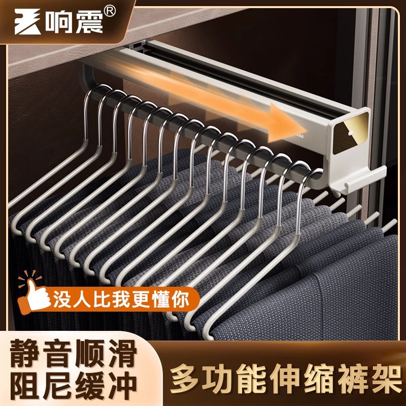 ズボン棚伸縮スライドレールカシミヤ灰箪笥ハンガー家庭用内蔵プルオーバー式トップ装着ダンピングクッションズボン引き出し棚