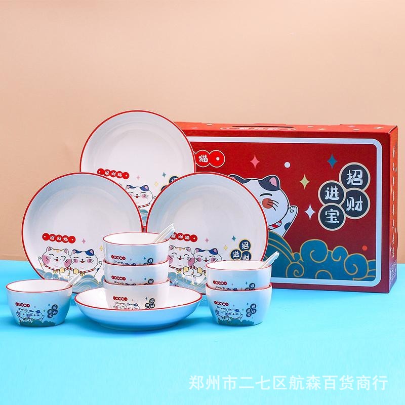 招き猫食器セット創意家庭用陶磁器食器スプーンビジネス店慶イベントプレゼント販促卸売り
