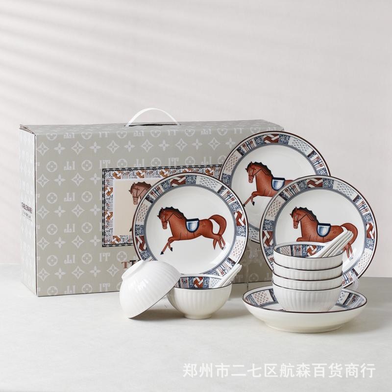 アイデアを尊ぶ軽豪華な駿馬陶磁器食器食器皿スプーンセット高級ビジネスイベントプレゼント卸売り共同購入