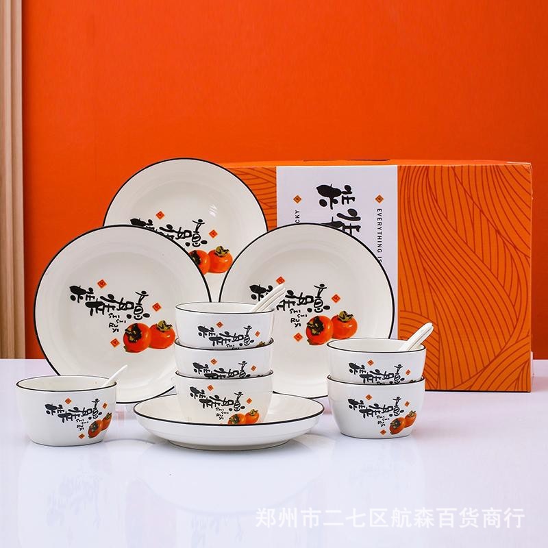 創意を尊ぶ家庭用柿如意陶磁器碗皿スプーン食器セットビジネスお土産会員プレゼント卸売り
