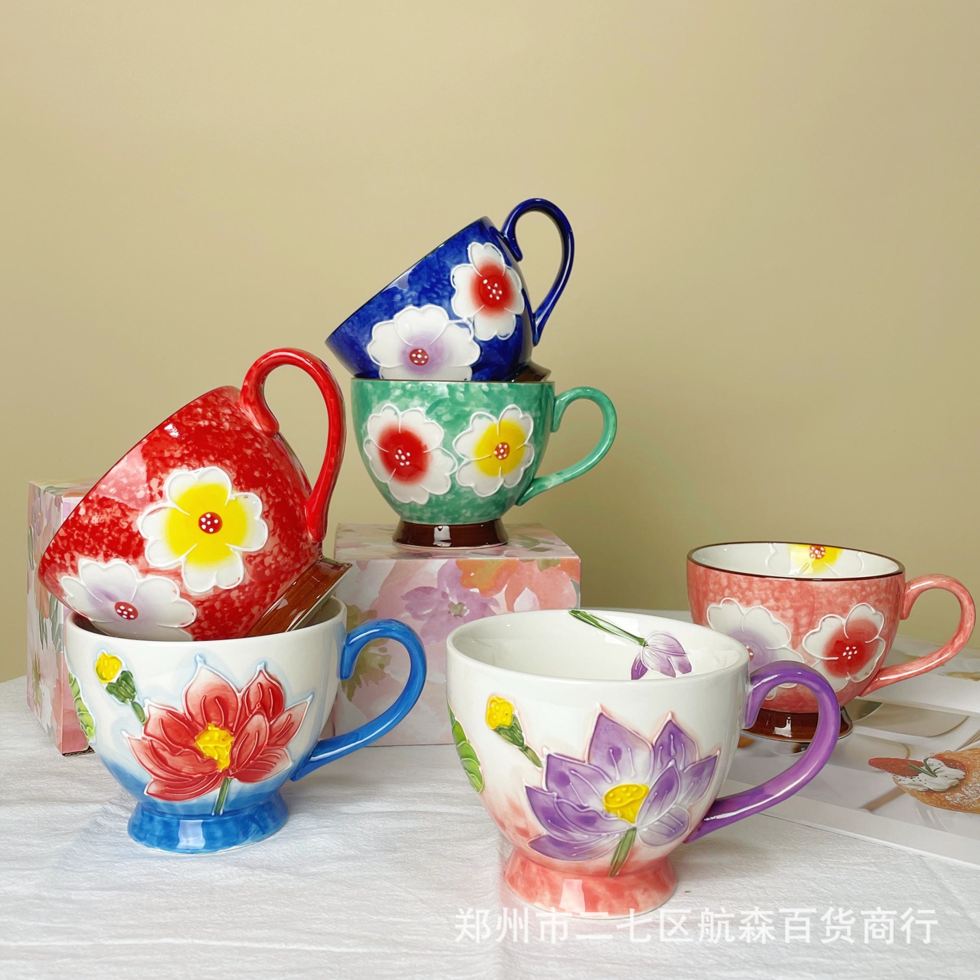 手描きコーヒーカップ高颜値創意陶磁器カップ朝食牛乳カップビジネスショップ慶イベント福祉プレゼント