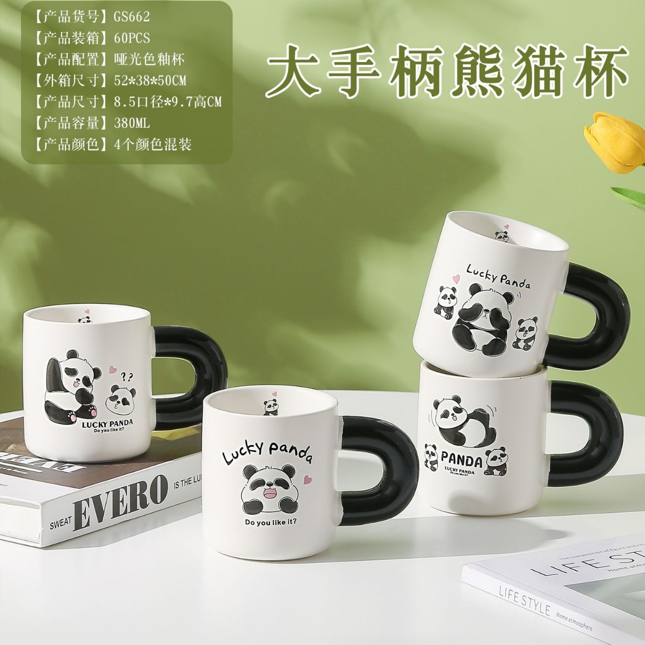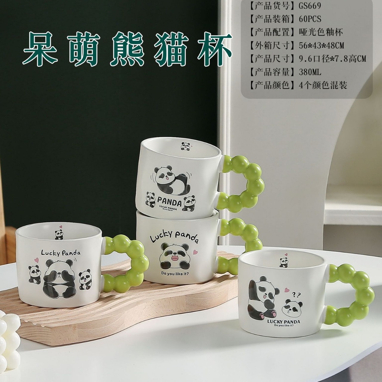 桂盛呆萌熊猫杯創意シンプル高颜値陶磁器マグカップコーヒーカップ店慶イベントプレゼント卸売り