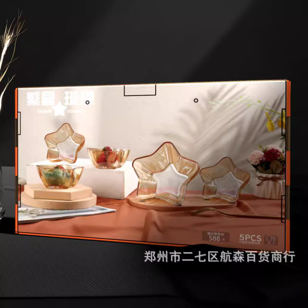 聚鑫ガラスの星が輝く高颜値ガラス果盤創意サラダ碗セットビジネス会員プレゼント卸売り
