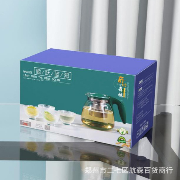聚鑫ガラス鯨躍藍海茶器五点セット創意泡ティーポットグラスセットプレゼント共同購入卸売り