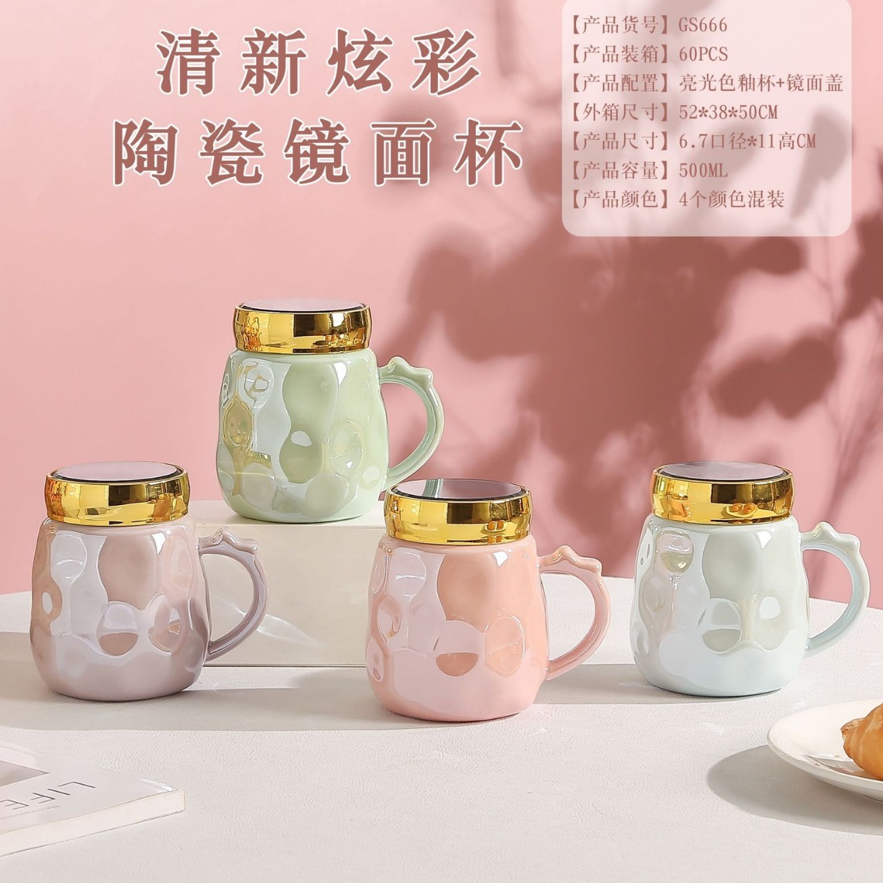 桂盛メッキ光沢陶磁器カップ高颜値マグカップクリエイティブオフィス家庭用コーヒーカップイベントプレゼント卸売り
