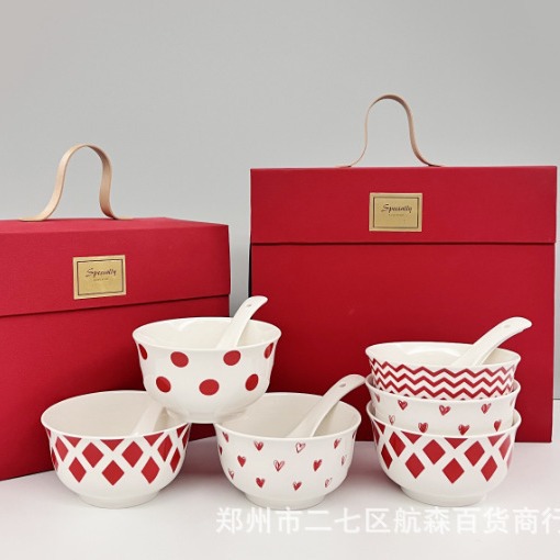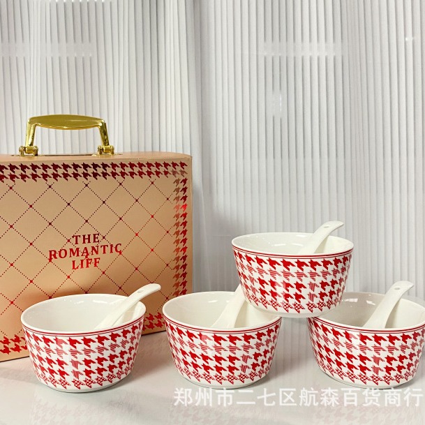 優麗創意軽豪華千鳥格高級碗匙陶磁器食器礼箱セットビジネス活動プレゼント卸売り