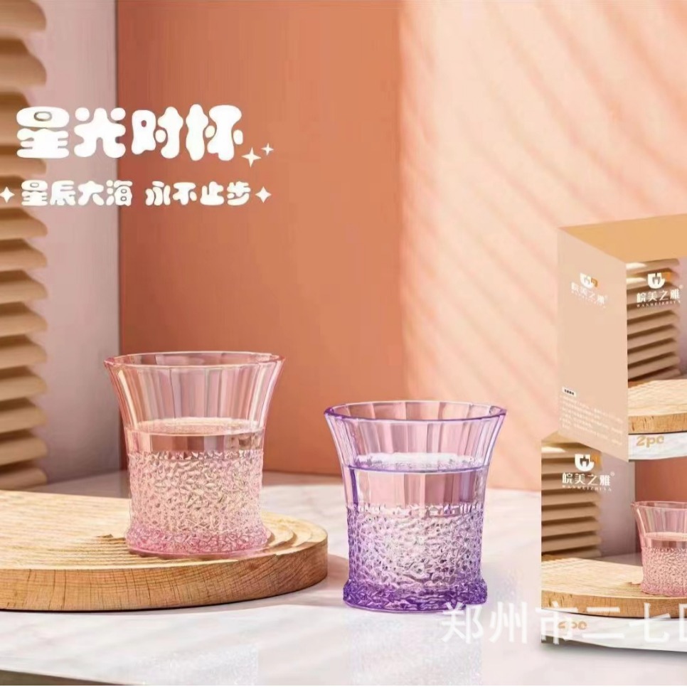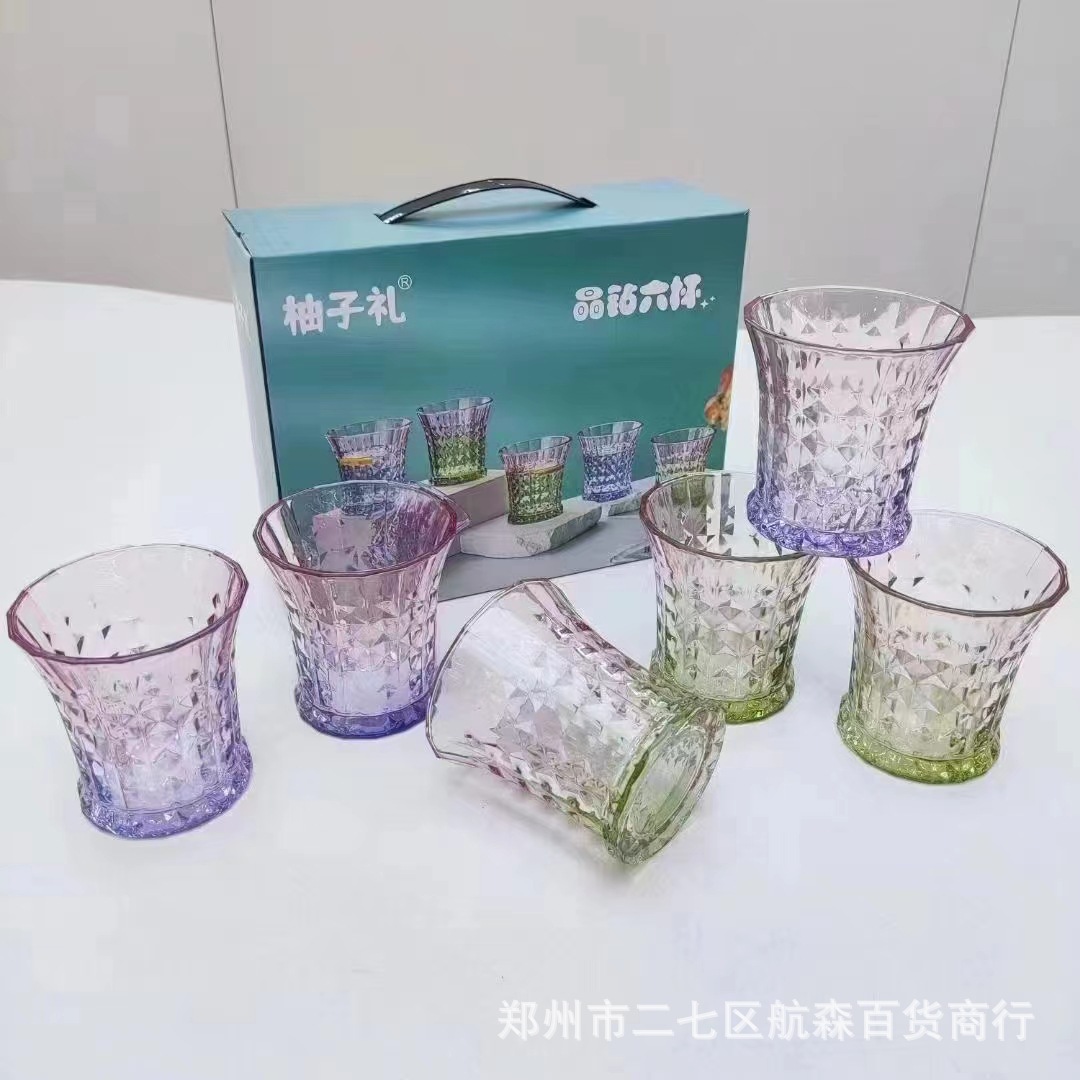 柚子礼晶ドリル六杯グラデーション色ガラスコップ家庭用創意コーヒーカップビジネス活動ギフトカップ卸売り