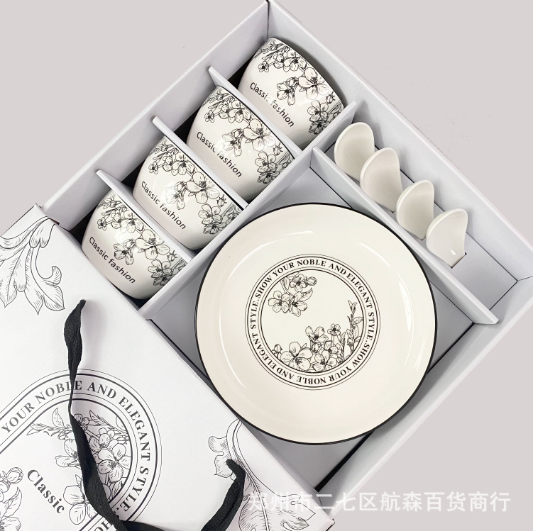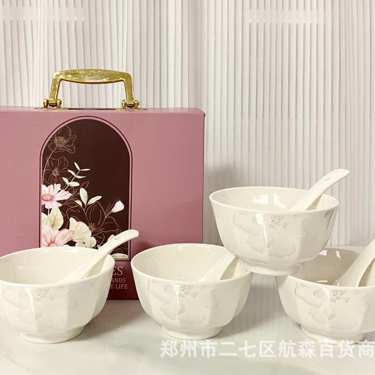 優麗赫本風創意軽豪華陶磁器碗皿スプーン食器セットビジネスお土産会員礼卸売り共同購入