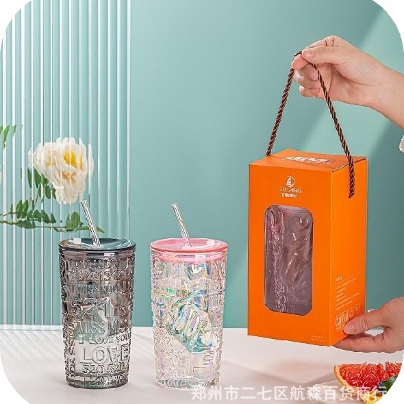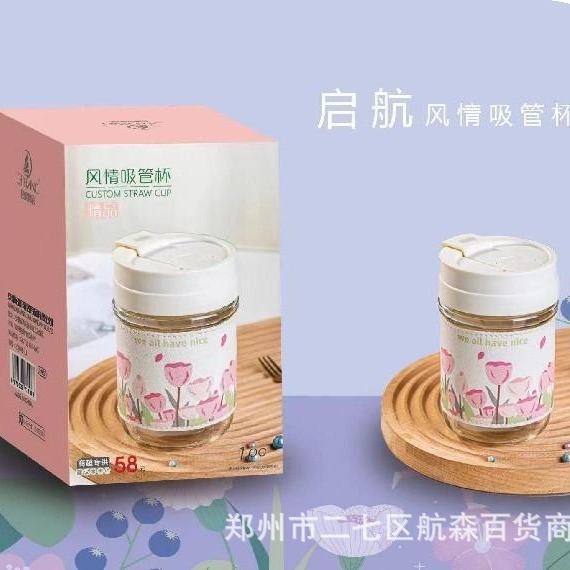 出港雅居風情ストローカップはクリエイティブガラス牛乳コーヒーカップビジネスギフトのみをセットして共同購入を促進する