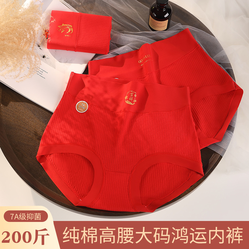 国風おめでたいラッキーな赤い下着の女性の大きいサイズ200斤の高腰の純綿の本命の蛇の年の幸運は大きいサイズの女性をプラスします。