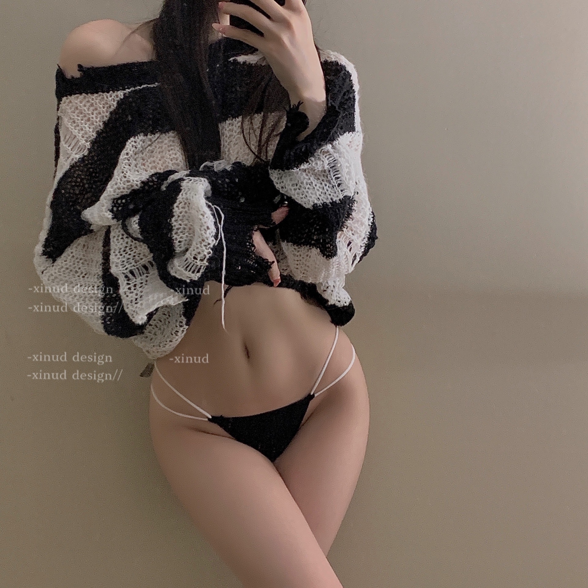 『Hottie』セクシーな双帯t字ズボンの女性欧米のシンプルな純綿の白黒は色の細い三角形の下着の女性にぶつかります。