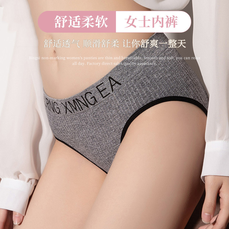 シンプルなスポーツ風の女性の下着の中で腰の50本の純綿の股の通気性の三角の下着のアルファベットは色の少女の下着にぶつかります。