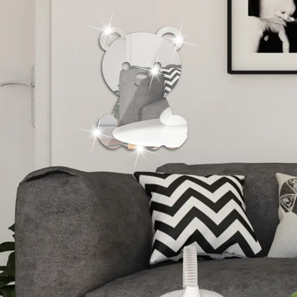 Zhe'an 新しいアクリルミラーステッカー SM338 シルバー漫画クマステッカーミラーステッカーリビングルーム寝室の装飾壁ステッカー