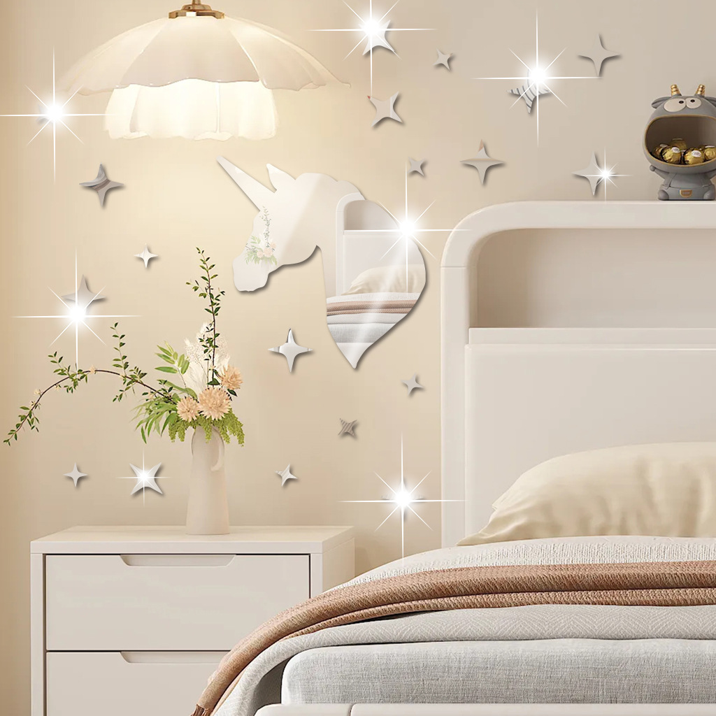 Zhe'an 新しいアクリルミラーステッカーアクリルユニコーンスターステッカーリビングルーム寝室の装飾