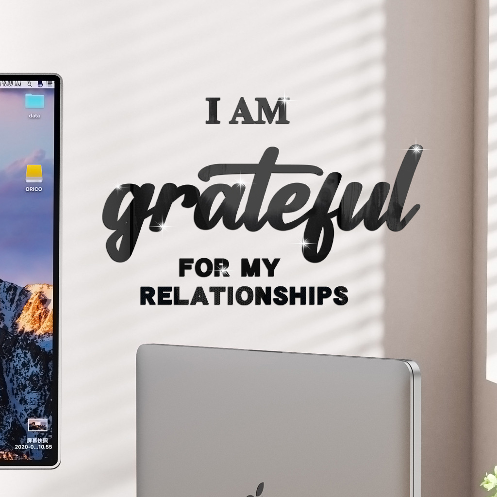 Zhe'an 新しいアクリルミラーステッカー私は感謝しています英語ミラーステッカーリビングルーム寝室装飾壁ステッカー