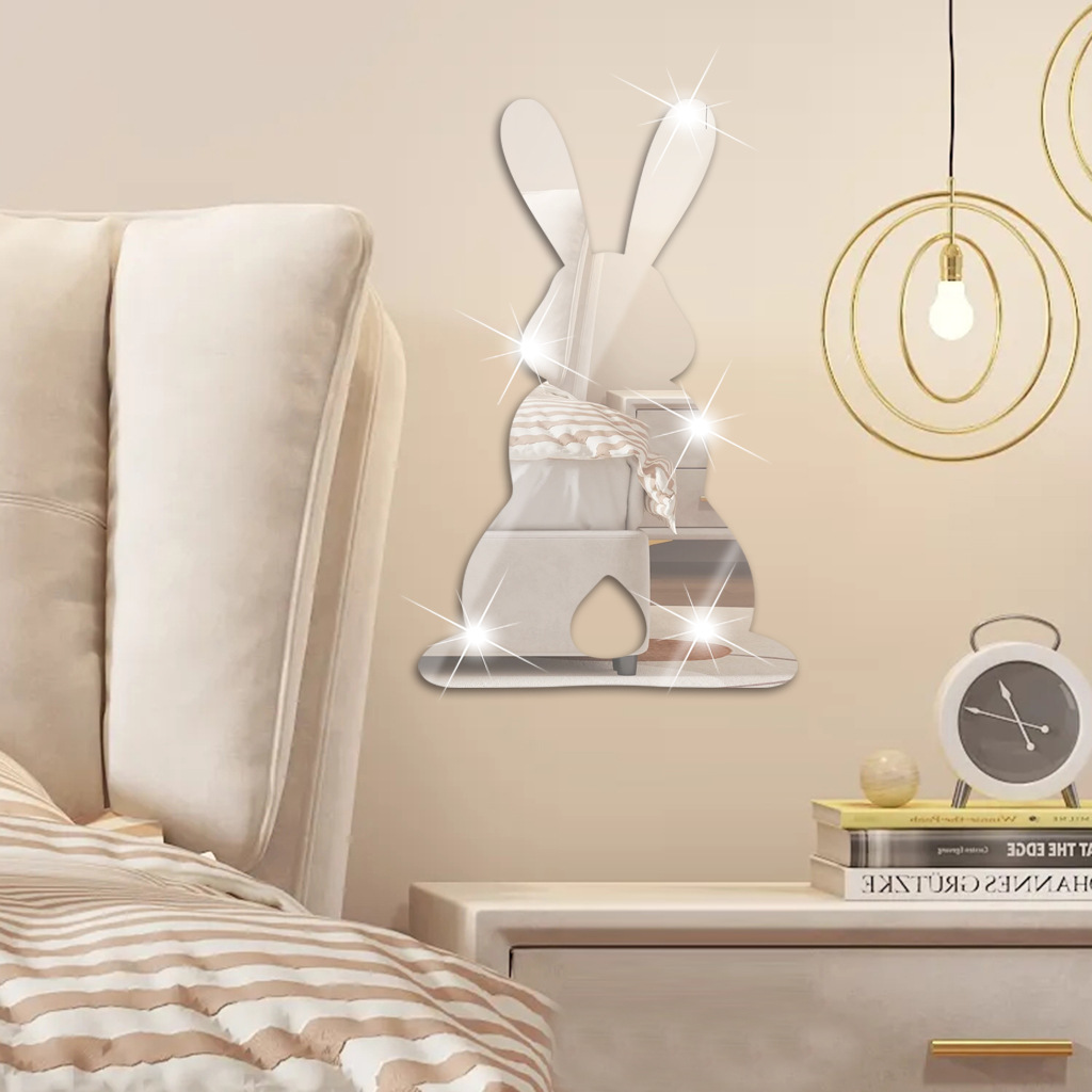 Zhe'an 新しいアクリルミラーステッカー SM340 シルバー漫画ウサギミラーステッカーリビングルーム寝室の装飾壁ステッカー
