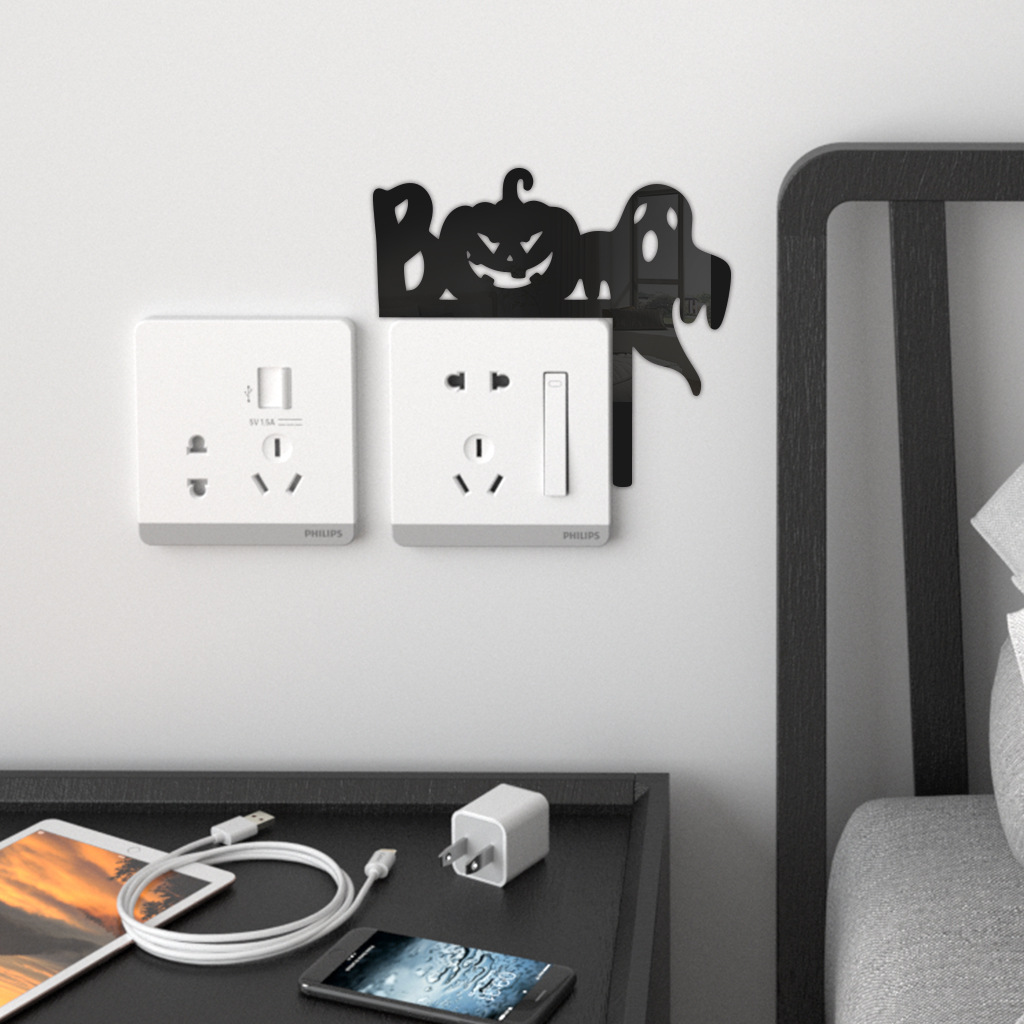 Zhe'an 新しい 1.5 ミリメートル厚さのアクリル板黒お化け屋敷スイッチステッカーリビングルーム寝室の装飾壁ステッカー